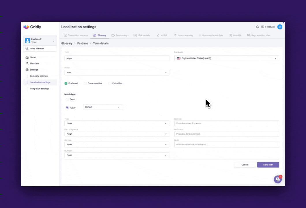 Give your term matching more flexibility with fuzzy match: detect variations like plural, different cases or suffix changes. Tailor exactly which part of the term must match and which can vary.